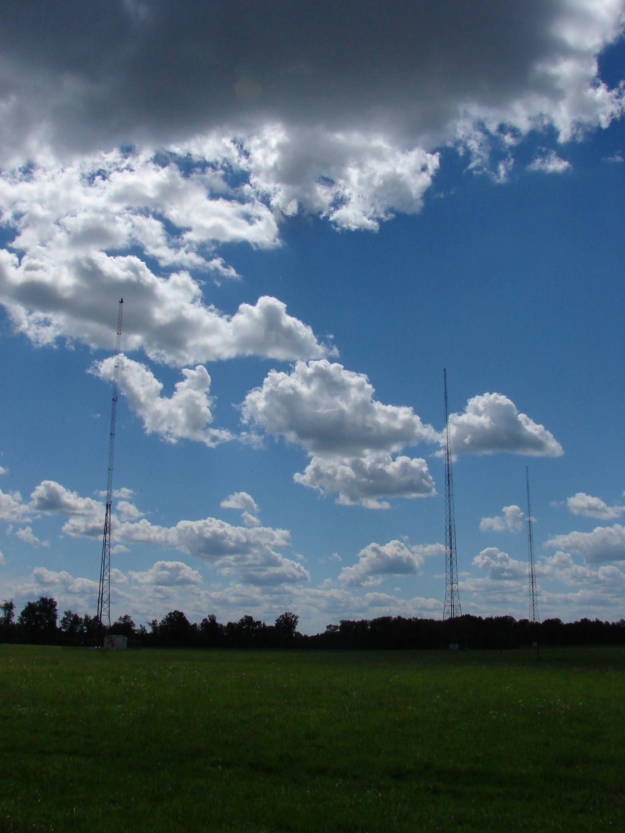 The three towers in the south row. Every tower in the array is of a different electrical height except 1 and 2 which are the same. I'm not certain if that is by design or was based on the amount of steel available when this array was constructed following World War II.