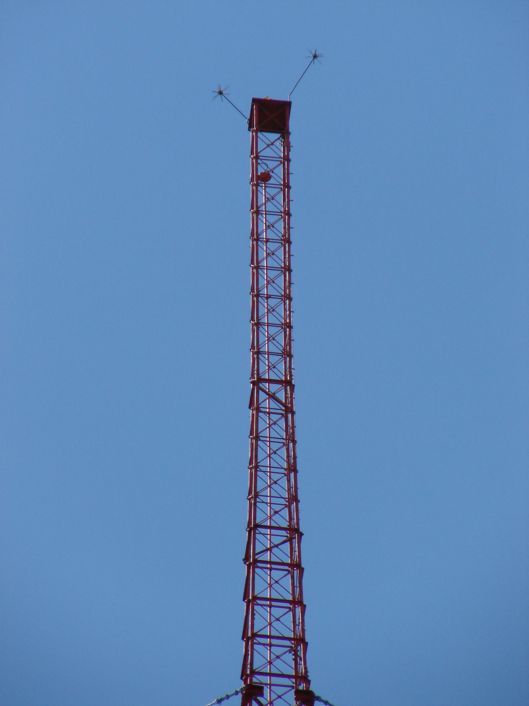 The tower abruptly ends with lightning dissipation arrays and a beacon.