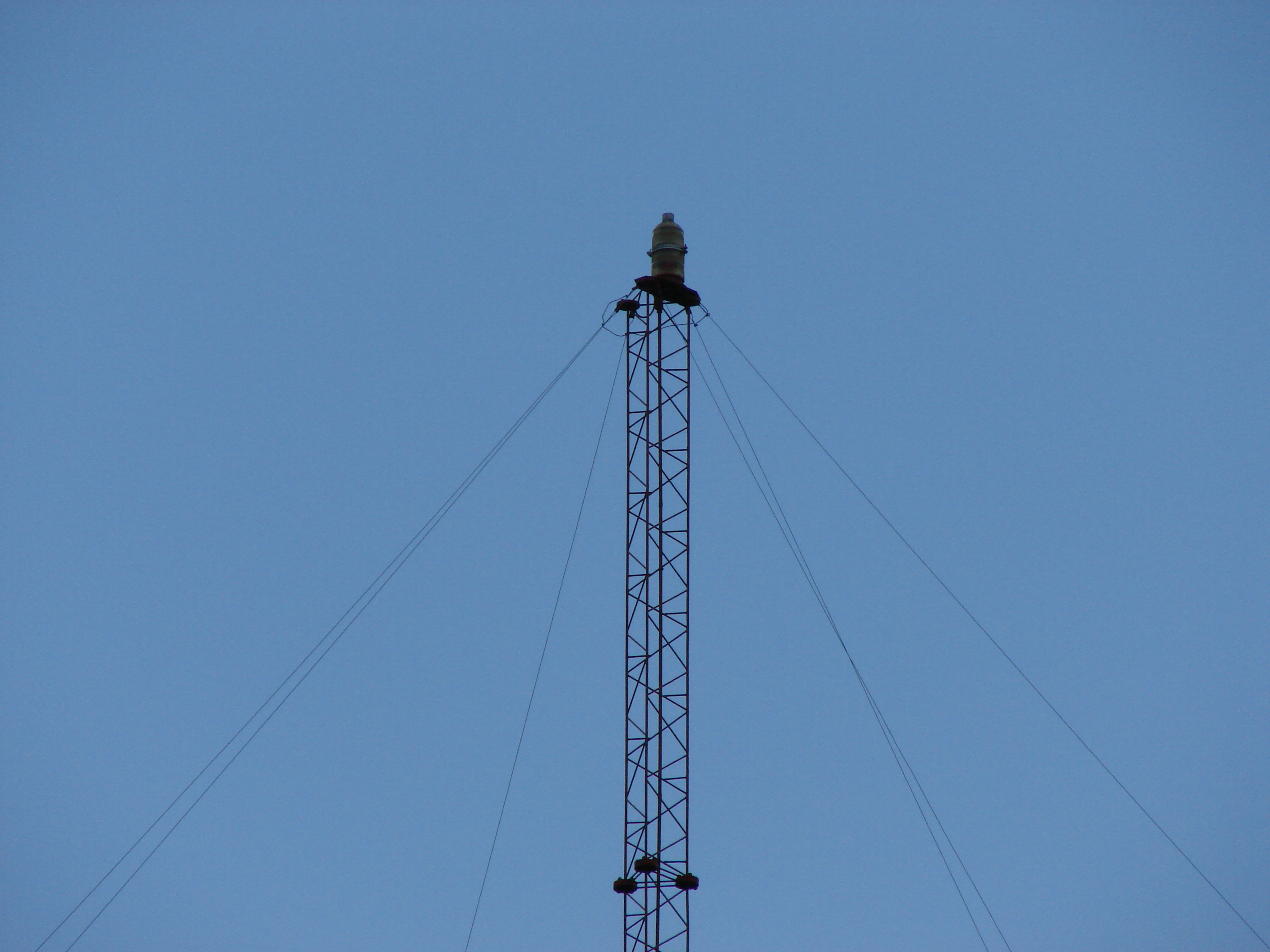 Top of tower 1 showing top-loading wires and the beacon.