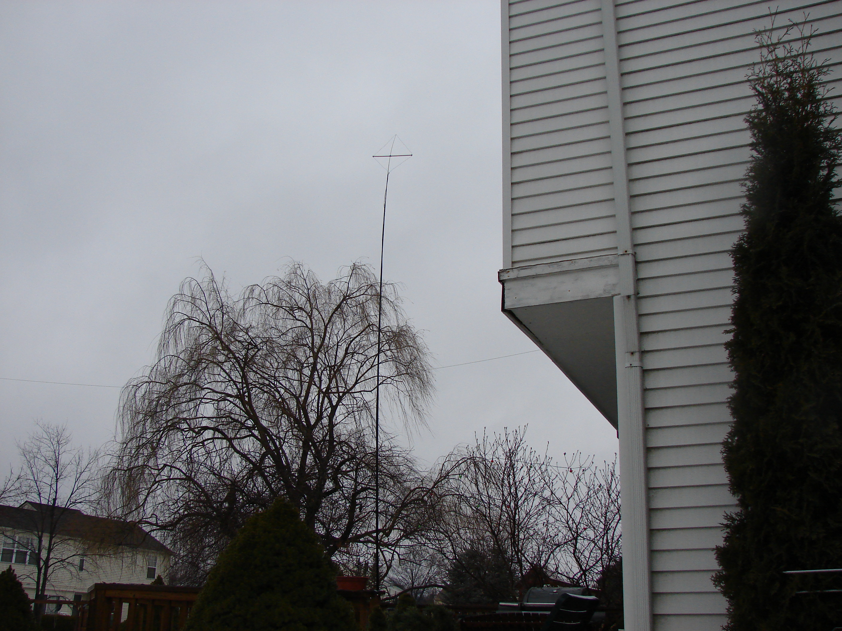 The mast fully extended. It is lashed to a deck post for stability.