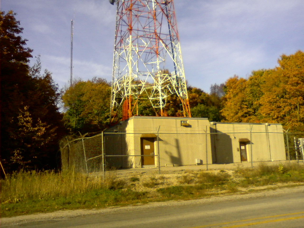Radio equipment building at the base of the tower.