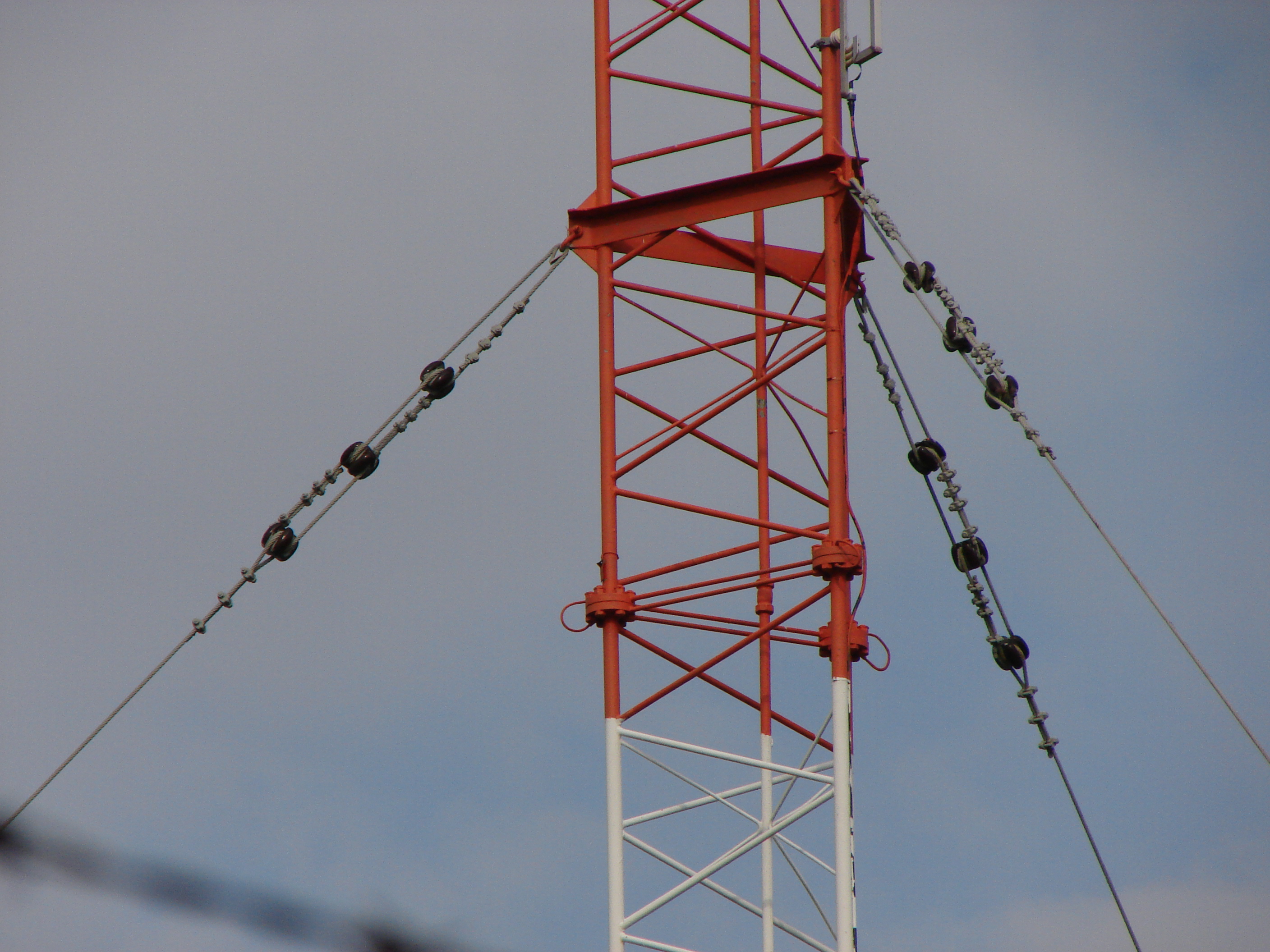 Another view of the guy attachment point. The tower's cross section tapers down above this point.