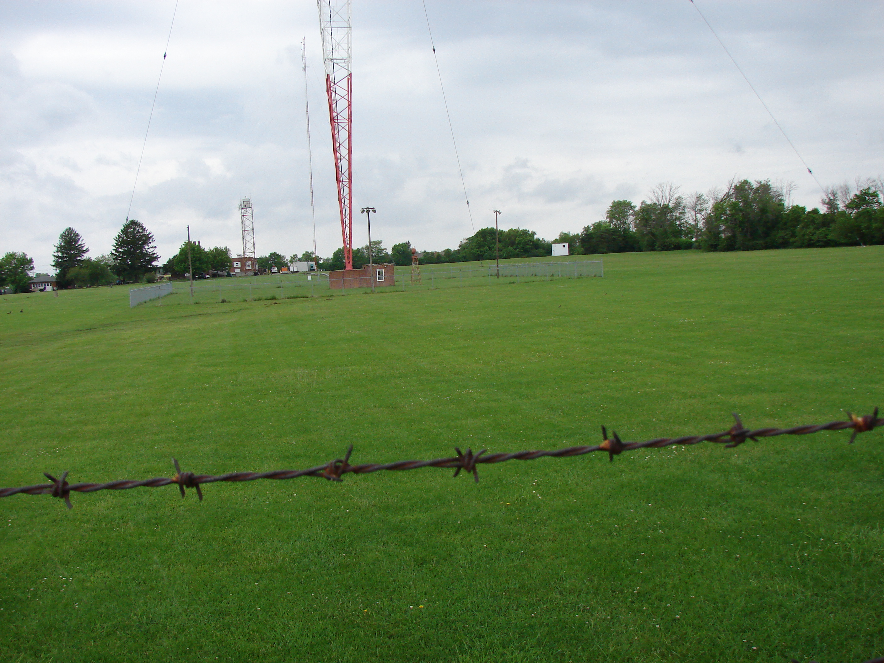 View from the east fence of the grounds and the tuning house at the base of the tower.