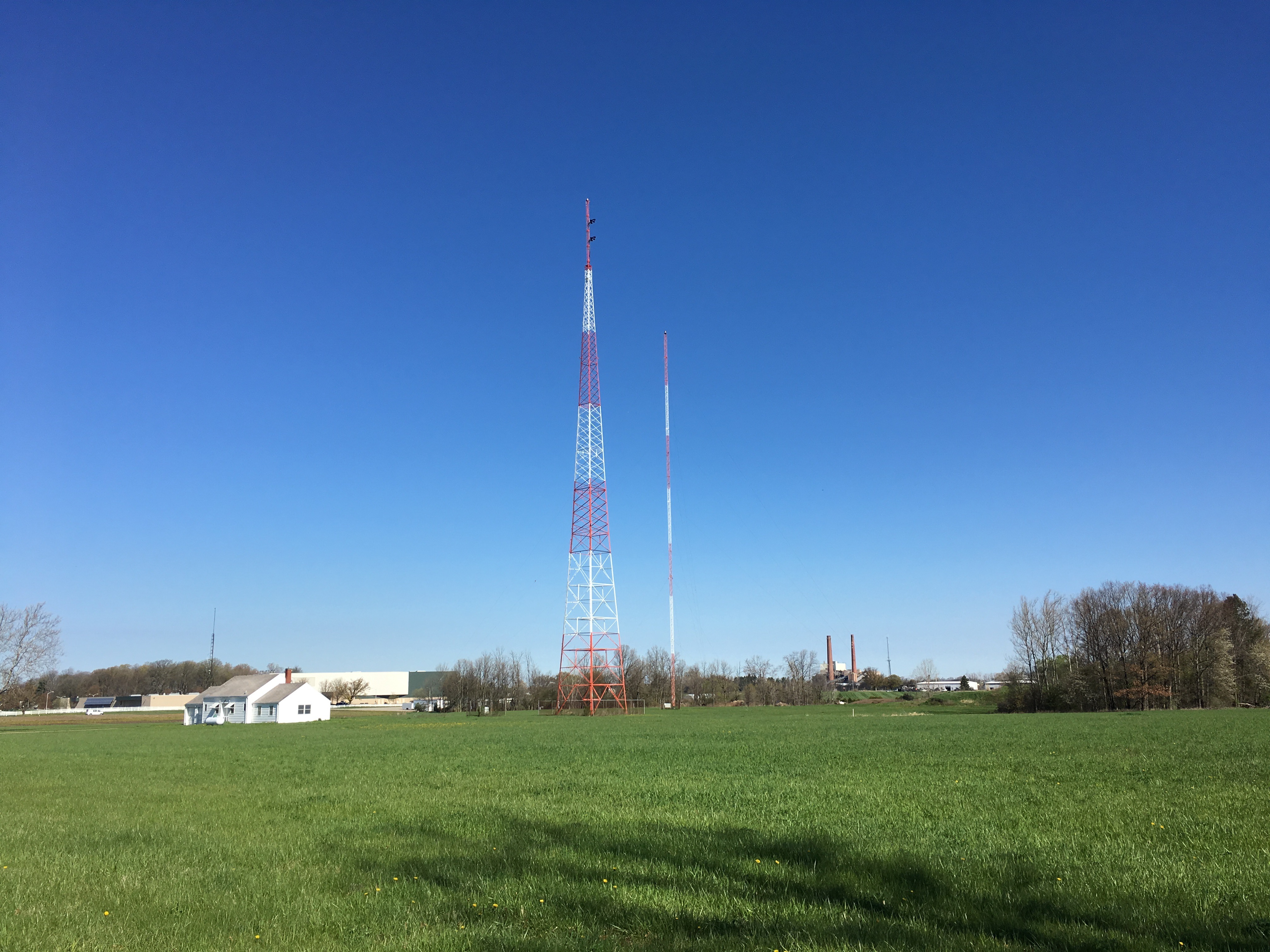 The white house to the left houses the transmitter, service shop, garage, and a vast archive of radio-related stuff (at least it did the last time I was there). In the distance behind the transmitter house is the MSU Pavilion for Agriculture and Livestock Education, a large arena that is the host to trade exhibits, dressage competitions and home and garden shows. To the right is the Hancock Turfgrass Research Center. The site is surrounded by other agricultural facilities including centers for crop science research, teaching and learning centers for dairy cattle, beef cattle, swine and sheep, a diagnostic center for population and animal health, and a nursery where trees and shrubs are grown for planting on the 5,000-acre campus. The smokestacks in the distance are part of the T. B. Simon cogenerating power plant, built in 1965 to augment the coal-fired generating station on campus which has since been decommissioned. The plant can operate on multiple fuels including natural gas, biofuel, and coal (which has not been used since 2016), and is capable of generating nearly 100 megawatts among its six units, making it one of the 500 largest power plants in the US. Michigan State generates virtually all of its own electric and steam energy for use on campus, and interchanges with CMS Energy and the Lansing Board of Water and Light.