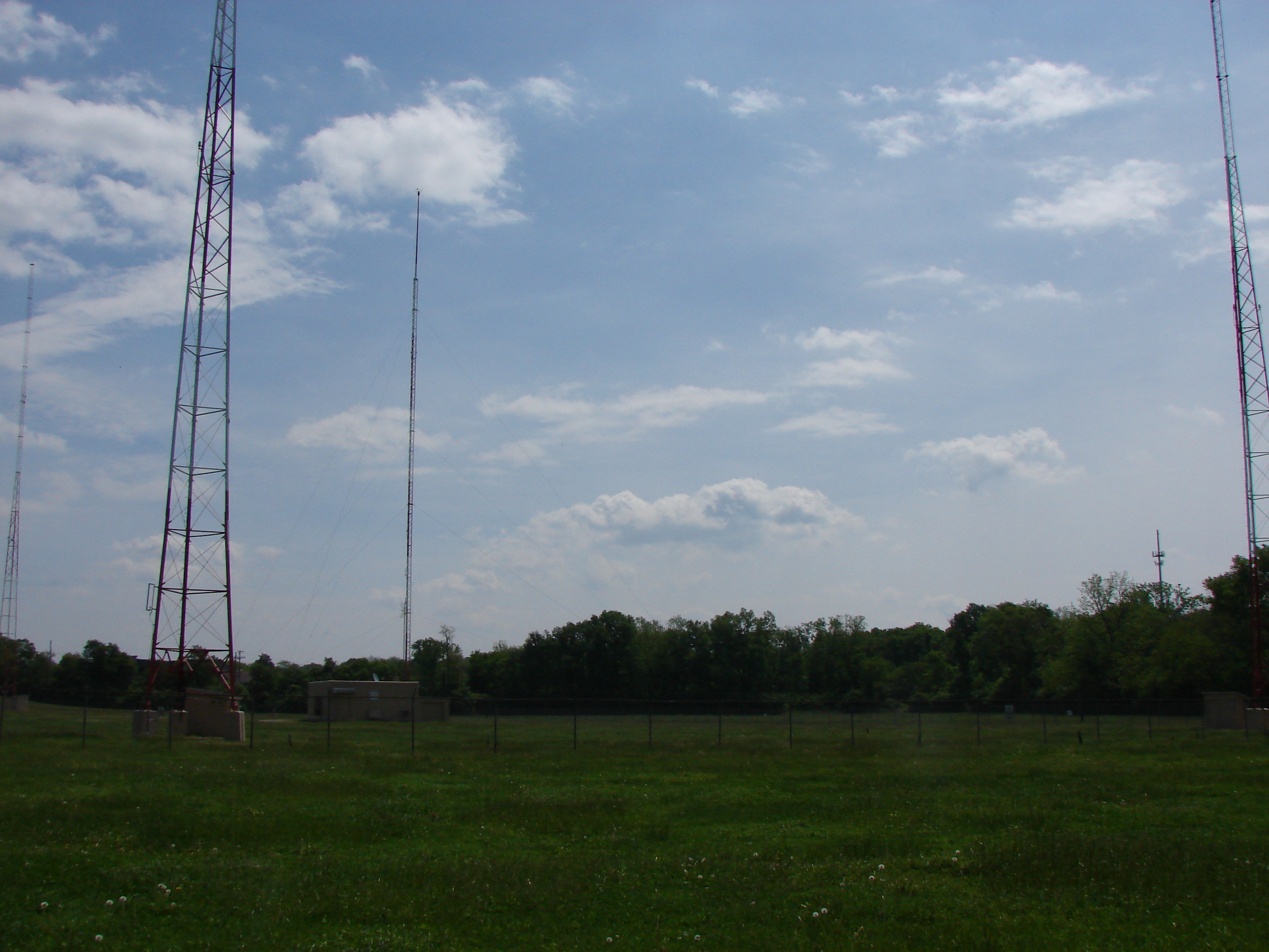 Tower 3 (the daytime Non-D tower) is the guyed tower in the middle.