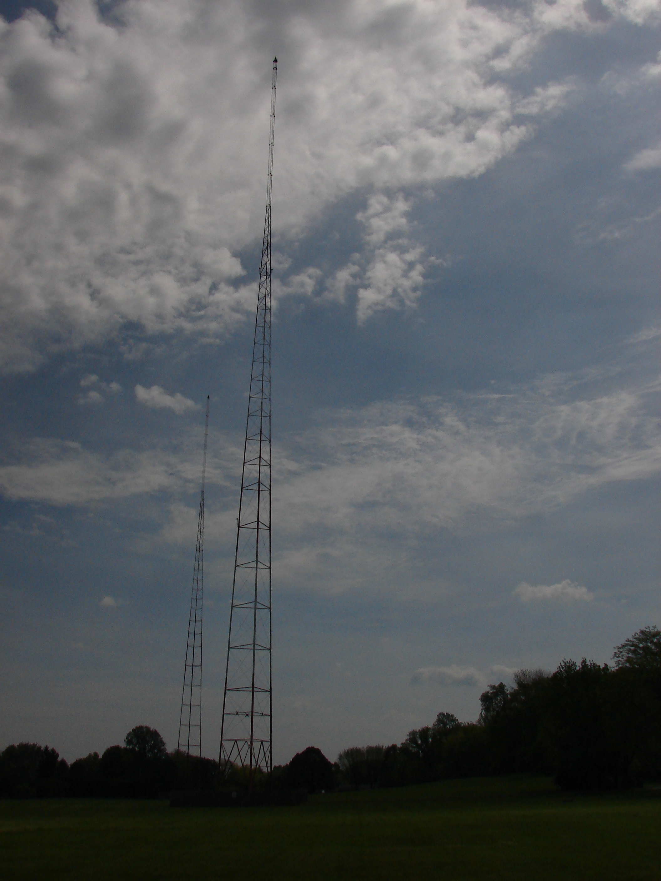 It's a two-tower wide spaced array (251 degrees) and the towers are very tall for the frequency - 200 degrees or 118 meters. Tower 1 is in the foreground.