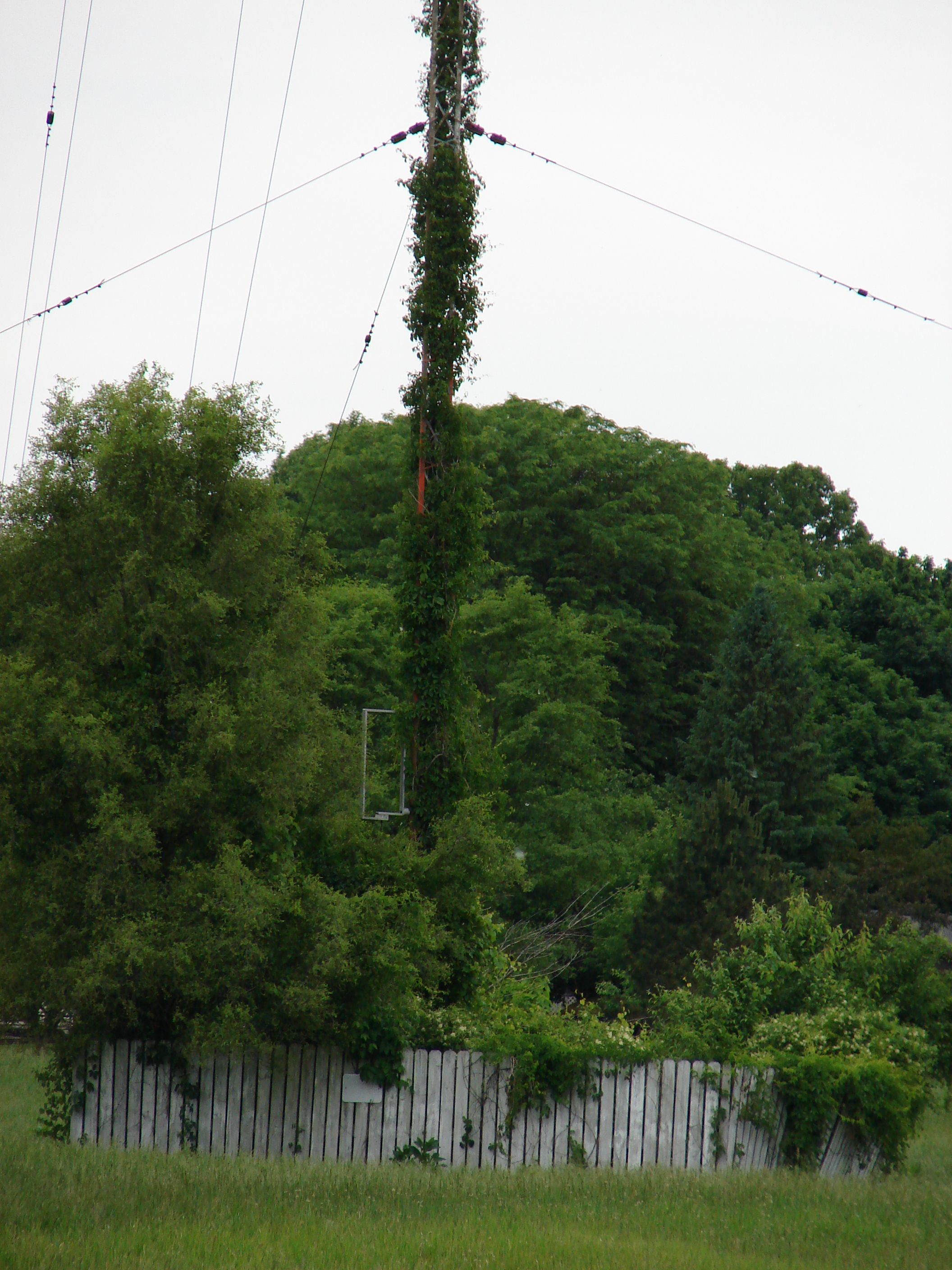 The tower is almost indistinguishable beneath the vegetation. The sample loop can be seen mounted on the tower.